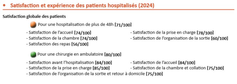 L’hôpital participe au dispositif national " e-Satis " qui évalue la satisfaction et l’expérience des patients après une hospitalisation de plus de 48h.